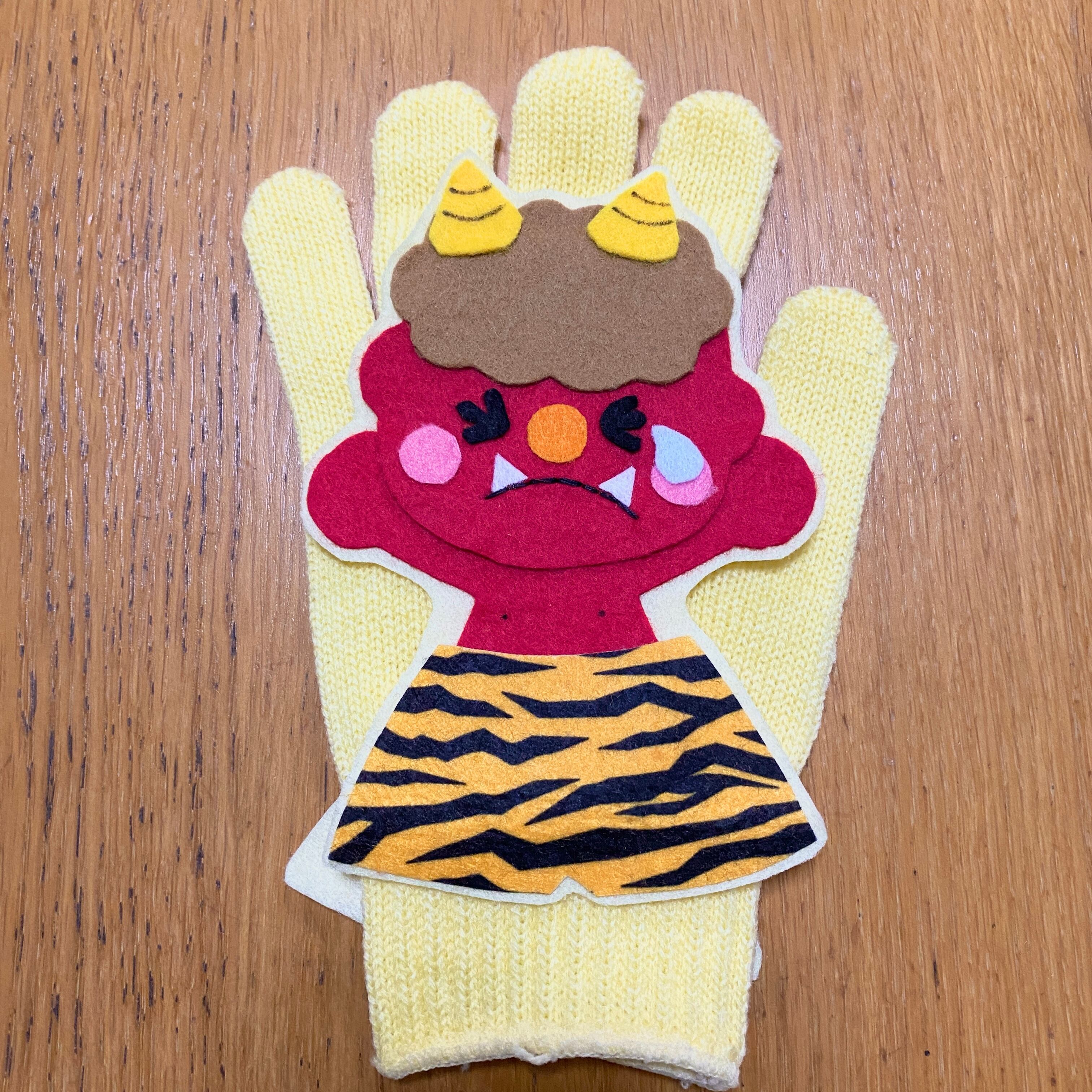 *表面のオニは手袋にくっ付いています。取り外し不可